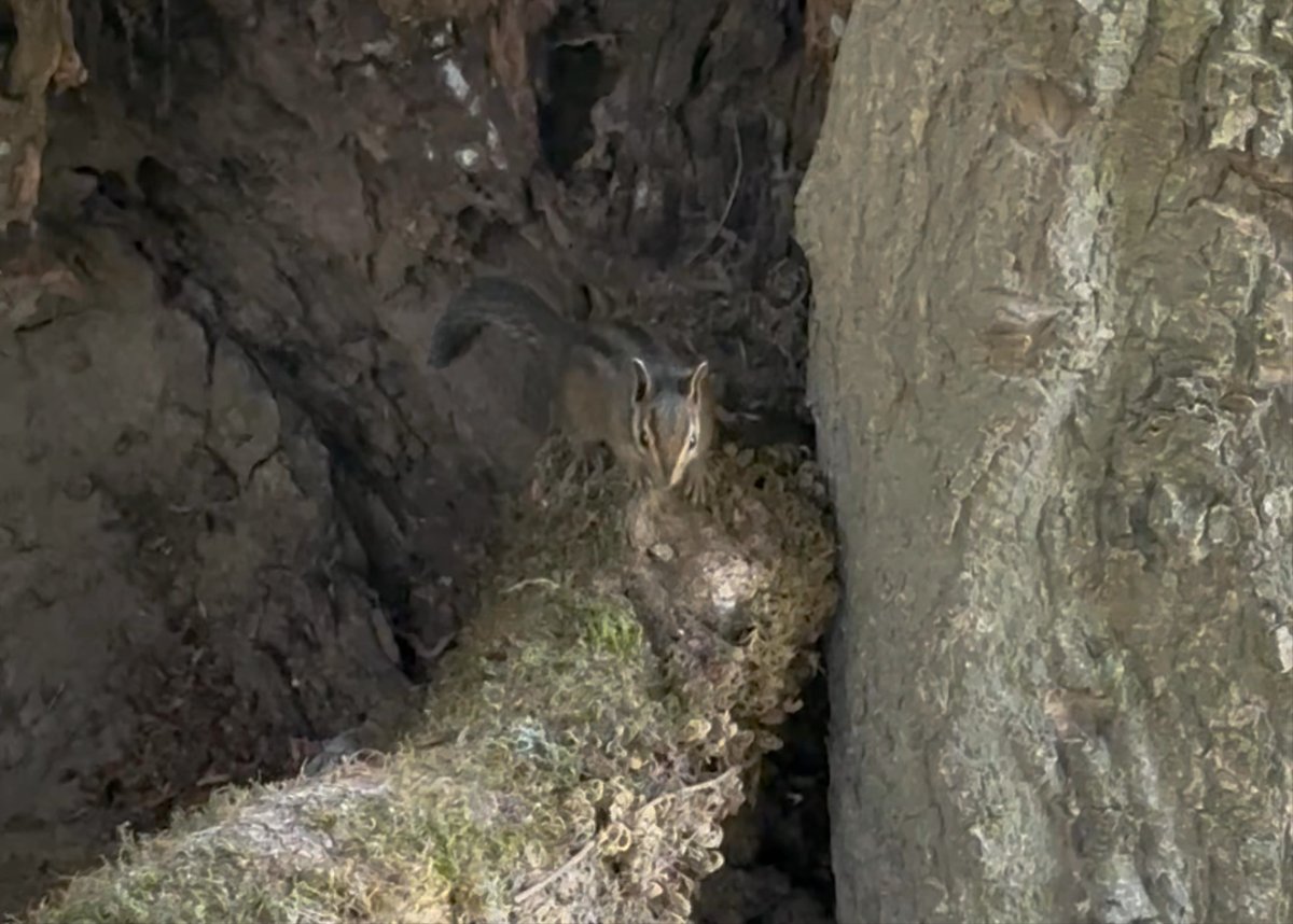 After being orphaned, the chipmunks are back home! It’s a state requirement that they be released no more than 5 miles from where they were found. We found a spot with lots of trees and away from houses (and cats 🐱), and it’s just a short distance from where they were found. They move so fast, but this one stuck around for just a moment for a very quick video.